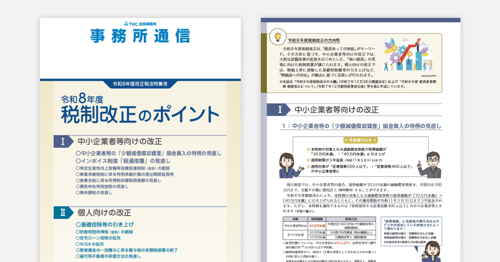 令和8年度税制改正の概要を顧問先に伝えるために、中小企業者等向けと個人向けの2章に分けて、税制改正のポイントをまとめた小冊子です。ぜひご活用ください。